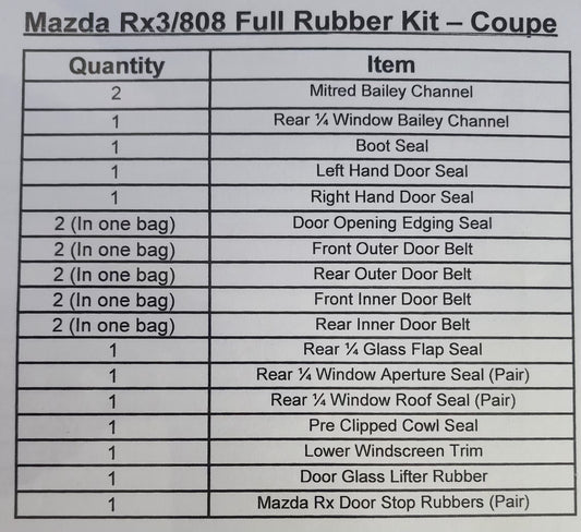 Sold outMazda RX3/808 Coupe Full Rubber kit